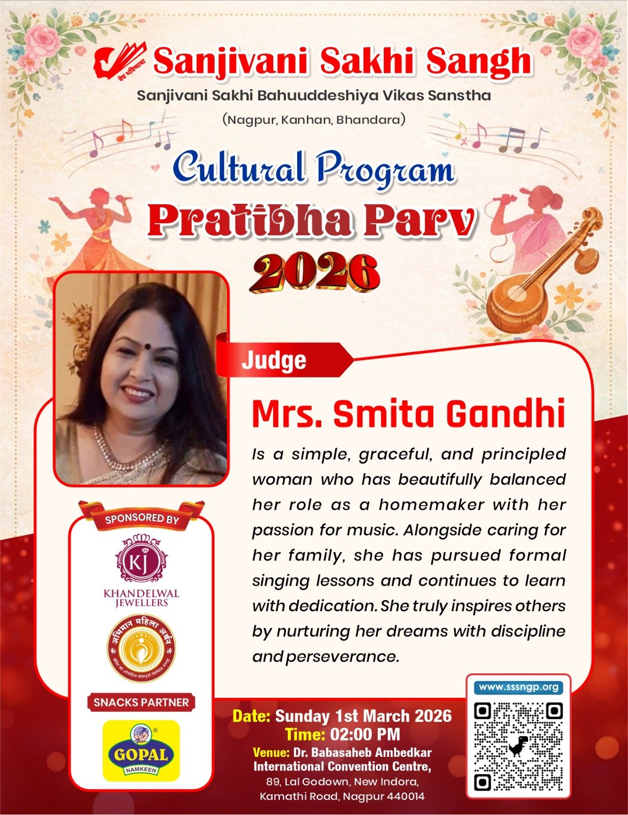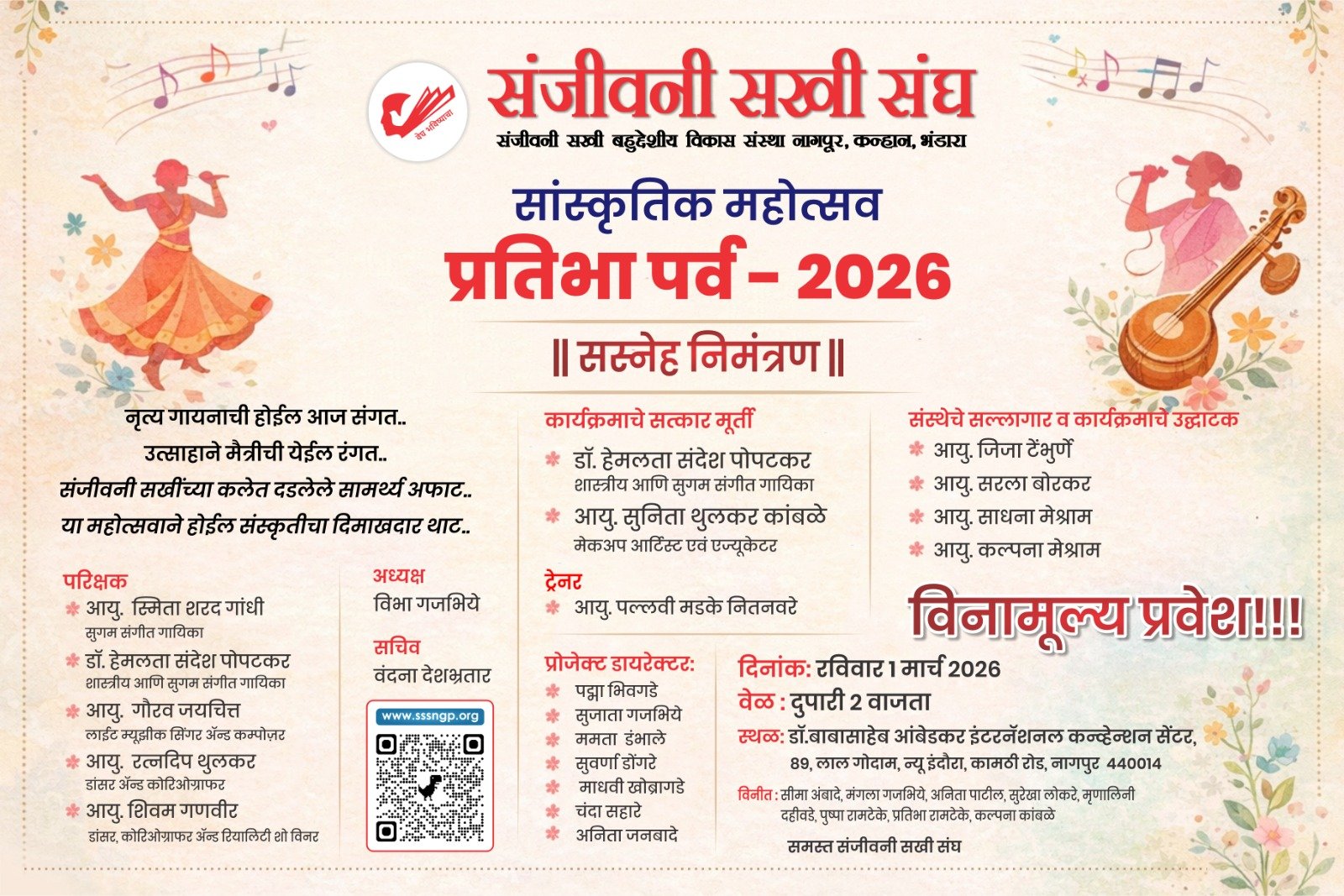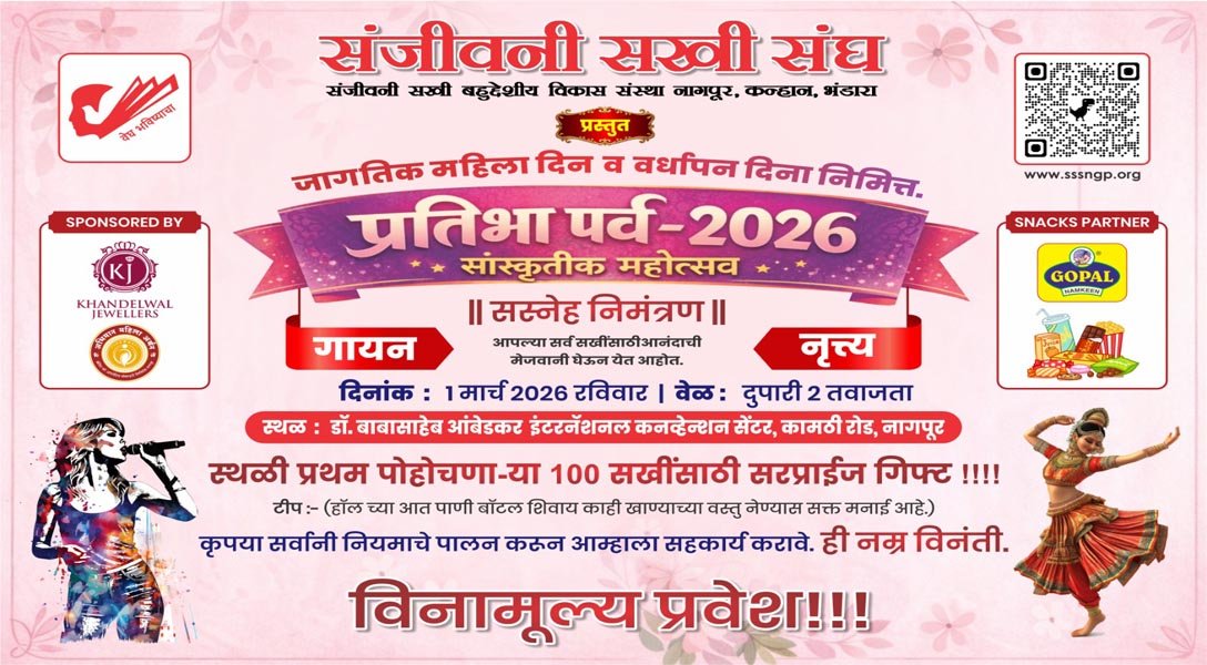 Uncategorized प्रतिभा पर्व – 2026 Updated on March 1, 2026 by Sanjeevanisakhisangh No Comments on प्रतिभा पर्व – 2026 सांस्कृतीक महोत्सवआपल्या सर्व सखींसाठीआनंदाची मेजवानी घेऊन येत आहोत….