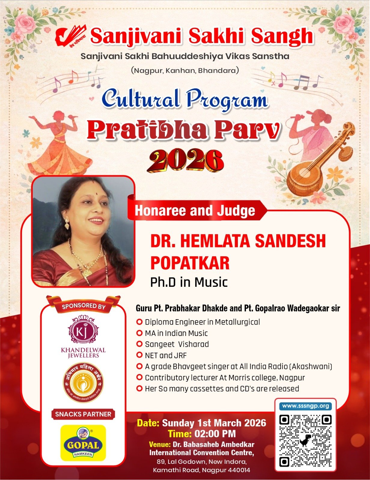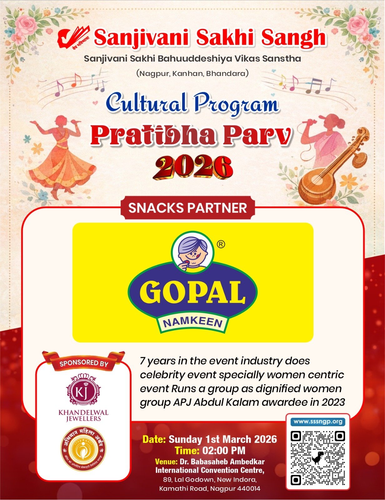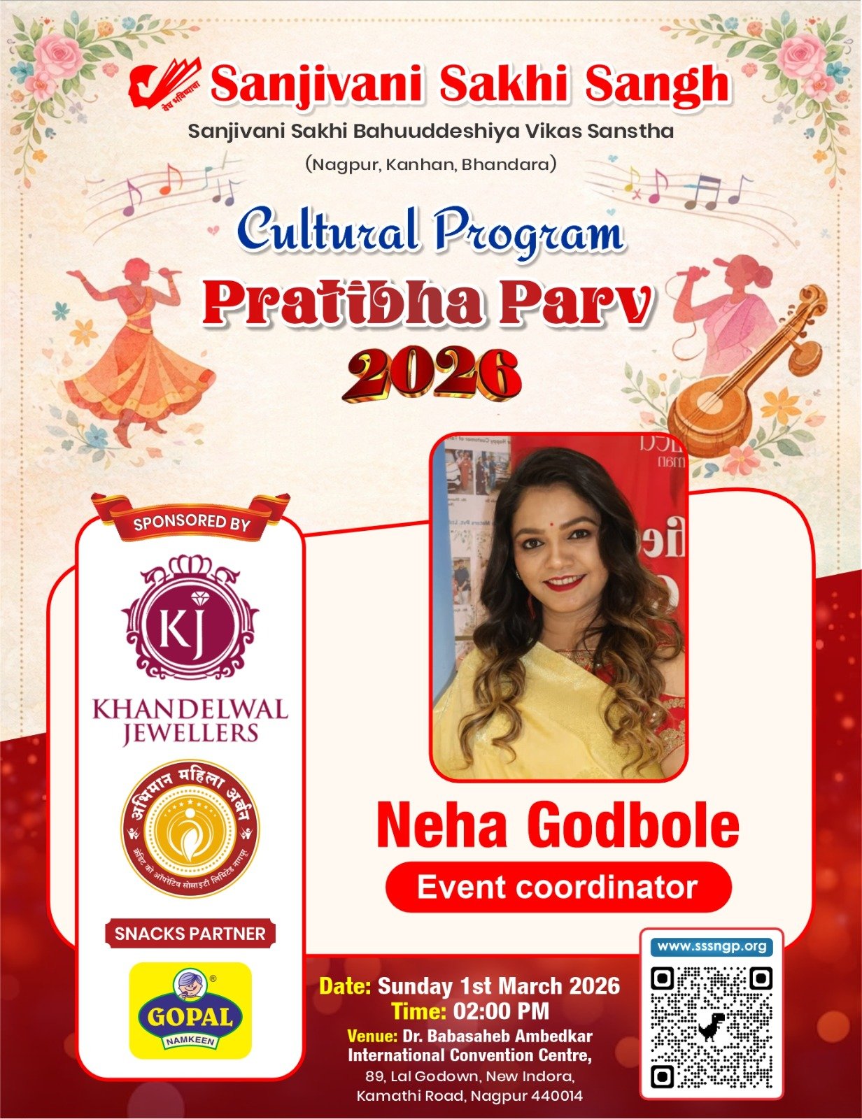 Uncategorized प्रतिभा पर्व – 2026 Updated on March 1, 2026 by Sanjeevanisakhisangh No Comments on प्रतिभा पर्व – 2026 सांस्कृतीक महोत्सवआपल्या सर्व सखींसाठीआनंदाची मेजवानी घेऊन येत आहोत….